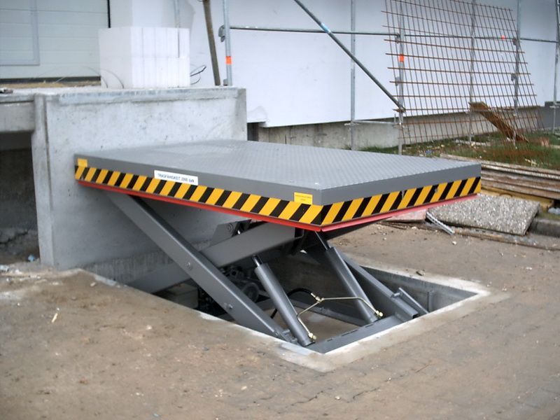 Scherenhubtische für Lasten und Güter mit Personenbegleitung mit elektro-ölhydraulischem- oder Spindel- Antrieb nach EN 1570 und UVV-VBG 14.Die Antriebssysteme sind mit Maschinenraum oder in maschinenraumloser Version lieferbar.